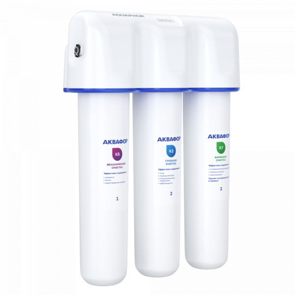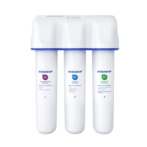 Картриджи последовательно очищают воду и от видимых примесей, и от растворенных. Первый картридж задерживает более крупные частицы, а каждый последующий - более мелкие. Чем больше ступеней - тем лучше фильтр очистит воду: поймает более мелкие видимые частицы ржавчины, песка и ила, успеет захватить из воды максимум растворенных примесей - хлора, нитратов, тяжелых металлов и других.