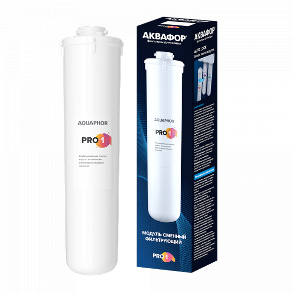 Внутри модуля Pro 1 карбонблоку с ионообменным волокном Aqualen™ предшествует набивной фильтрующий слой на основе Aqualen™ и порошкового активированного угля. Эта комбинация значительно увеличивает грязеемкость системы по сравнению с характеристиками фильтров серии АКВАФОР Кристалл и на 20% увеличивает общий ресурс.