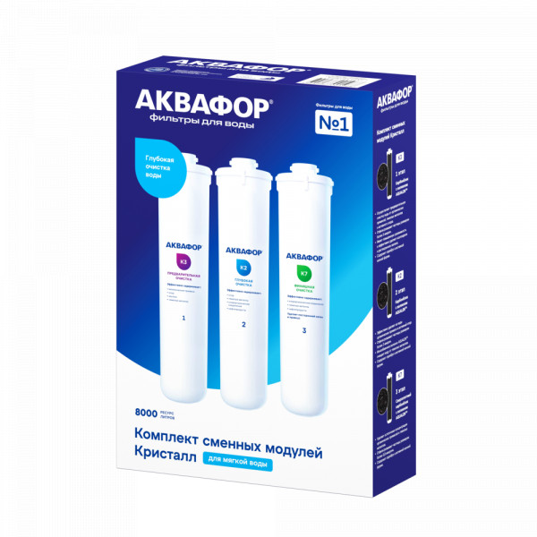 Комплект сменных модулей глубокой очистки. Оптимален для мягкой воды. В условиях жесткой воды он полностью выполняет функцию глубокой очистки от вредных примесей, однако не снижает минерализацию. Поэтому, если при кипячении на нагревательных элементах образуется белый налет, рекомендуем рассмотреть специализированный комплект с умягчающим модулем для глубокой очистки воды.