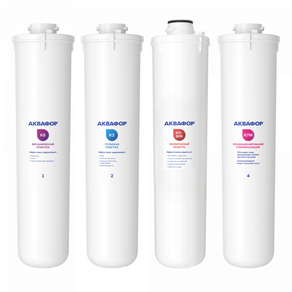 Комплект сменных модулей для системы обратного осмоса с мембраной. Подойдет тем, у кого срок службы мембраны (1,5 года) подходит к концу.
