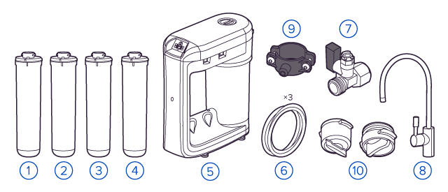 В фильтрах обратного осмоса установлена мембрана, которая не пропускает ничего, кроме воды (вода проходит через неё под давлением). Такой фильтр делает безопасной водопроводную воду любого качества, удаляя все вредные примеси: бактерии, вирусы, хлор, тяжелые металлы, нитраты, фармацевтику. Обратноосмотические фильтры используются для абсолютной защиты от накипи, т.к. полностью устраняют соли жесткости из воды. |