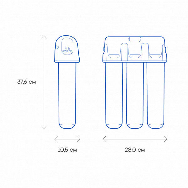 Обратноосмотические фильтры используются для абсолютной защиты от накипи, т.к. полностью устраняют соли жесткости из воды.даЧисло ступеней очисткиКартриджи последовательно очищают воду и от видимых примесей, и от растворенных. Первый картридж задерживает более крупные частицы, а каждый последующий - более мелкие. Чем больше ступеней - тем лучше фильтр очистит воду: поймает более мелкие видимые частицы ржавчины, песка и ила, успеет захватить из воды максимум растворенных примесей - хлора, нитратов, тяжелых металлов и других.4УмягчениеУдаление из воды солей жесткости (солей кальция и магния, из-за которых образуется накипь в чайнике, белые пятна на посуде, известковый налет). Фильтры обратного осмоса абсолютно умягчают воду с любой концентрацией солей (то есть удаляют соли жесткости полностью). Проточные фильтры со специальными картриджами рекомендуются только для умягчения воды средней жесткости (той, в которой средняя концентрация солей кальция и магния - до 5 млэкв/литр).абсолютноеМинерализацияПроисходит после финишной очистки воды. Необходима прежде всего в фильтре обратного осмоса, поскольку такой фильтр полностью устраняет из воды все примеси, в том числе минералы. Минералы добавляются в оптимальной концентрации - для пользы и привычного вкуса воды.даНакопительная емкостьОбычно нужна в фильтрах обратного осмоса. Глубокая фильтрация требует времени. Чтобы Вам не приходилось ждать, пока вода наберется в чайник или кастрюлю, почти во всех моделях используется накопительный бак для чистой воды или другая емкость. В стандартном фильтре обратного осмоса под мойку воды в баке достаточно для семьи из 5-6 человек.даФильтрующий модуль в комплектедаОтдельный краннетДавление в водопроводе не менее, атм1,5Давление в водопроводе не более, атмМаксимальное давление воды на входе в систему, при котором возможна стабильная работа фильтра.6,5Ширина, смОбратите внимание на габариты фильтра, и измерьте, сколько свободного пространства в предполагаемом месте установки.28,0Глубина, смОбратите внимание на габариты фильтра, и измерьте, сколько свободного пространства в предполагаемом месте установки.10,5Исходная водаЖесткая вода – вода с избытком минеральных солей. От нее появляется накипь в чайнике, известковый налет на сантехнике и разводы на посуде. Мягкая вода – та, в которой мало минеральных солей. Нет накипи в чайнике и разводов на посуде. Фильтры для мутной воды и фильтры от ржавчины, как правило, имеют несколько стадий очистки и дополнительный полипропиленовый картридж. Он задерживает механические частицы ила, песка и ржавчины и защищает картриджи более глубокой очистки.жёсткаяУстраняет мутностьМутность водопроводной воды может говорить о том, что в ней много мелких механических частиц. Важно, чтобы в фильтре был установлен дополнительные картридж механической предфильтрации (полипропиленовый) - он продлит жизнь остальным картриджам более тонкой очистки.даУстраняет ржавчину, бурый осадокЛюбой фильтр под мойку удалит из воды крупные и мелкие частицы ржавчины. Некоторые фильтры имеют повышенный ресурс по железу: они дольше служат в такой воде, поскольку лучше подходят для удаления из воды железа и механических частиц ржавчины.даЗащита от бактерийВсе проточные фильтры в той или иной степени защищают от бактерий. Наприме